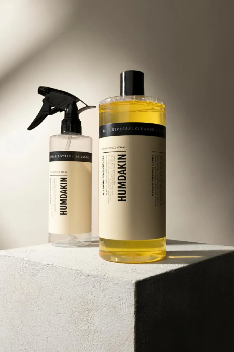 Universalrengøringen er et koncentrat. Brug 3-5 ml (en te-ske) til 500 ml vand. Med en mild parfume og duft af havtorn og salvie.