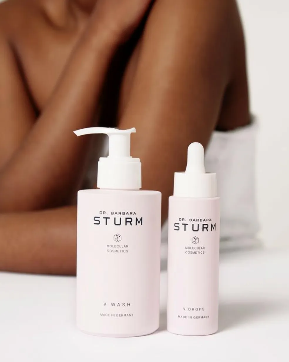 Efter rens med Dr. Barbara Sturms V WASH, påfør V DROPS i håndfladen.