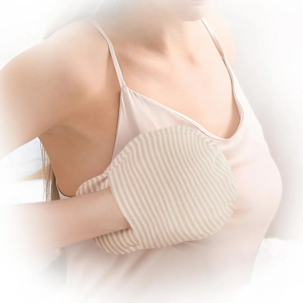 Kom aldrig varme- og kølepuden direkte på brystet, men benyt altid det medfølgende omslag.