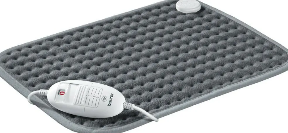Blød varmepude fra Beurer i mørkegrå med lysegrå kant.