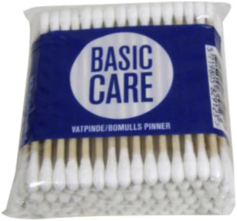 Vatpinde af træ med dupper af bomuldsvat. Længde: 7,5 cm. 100 stk.