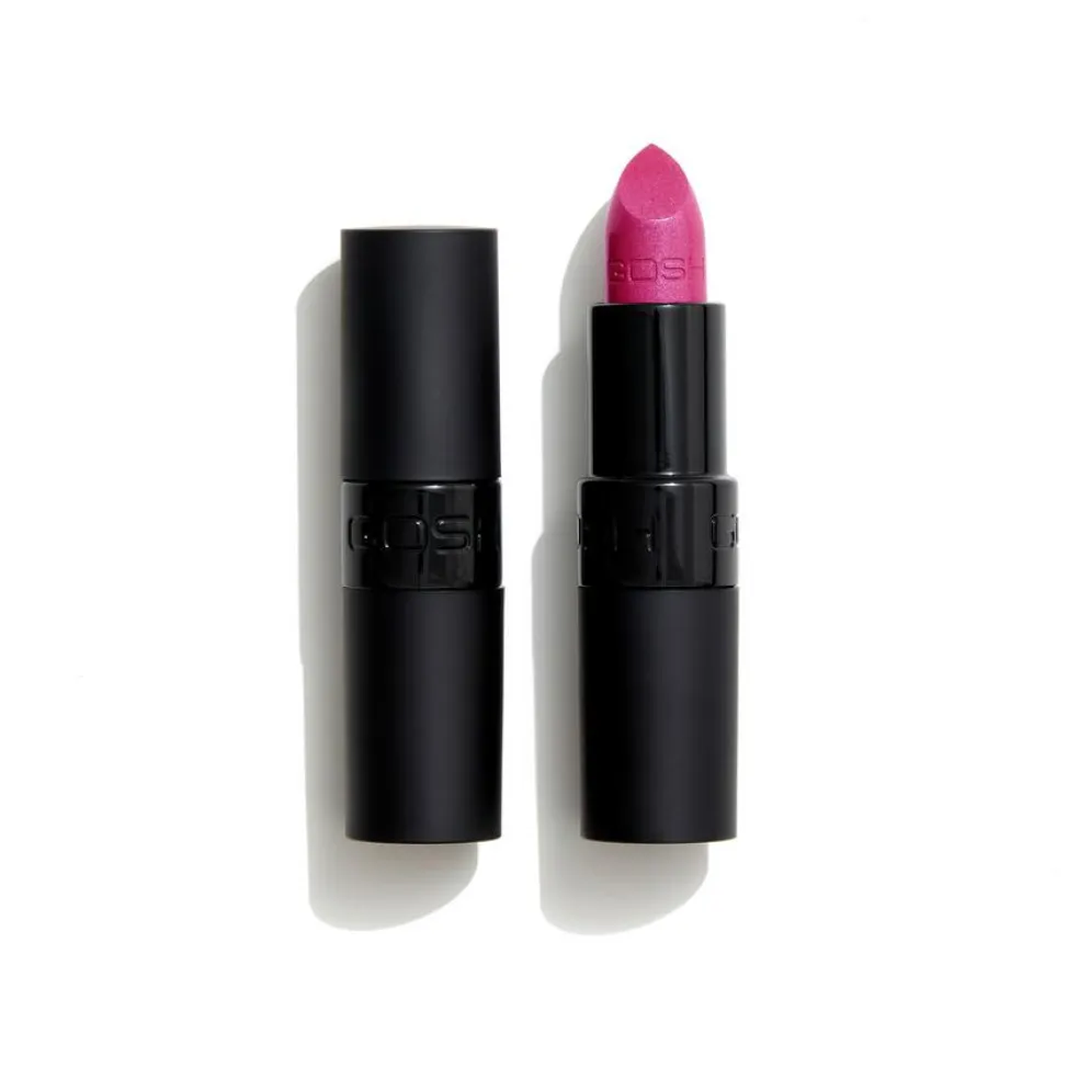 GOSH Velvet Touch Lipstick giver med sin høje pigmentkoncentration en intens holdbar farvevirkning på læberne. Den cremede læbestift indeholder type lysreflekterende pigmenter, der giver læberne en helt fantastisk glans. GOSH Velvet Touch Lipstick har en høj koncentration af vegetabilske olier, der beskytter og plejer læberne. Indeholder desuden E-vitamin, som modvirker de fri radikaler.