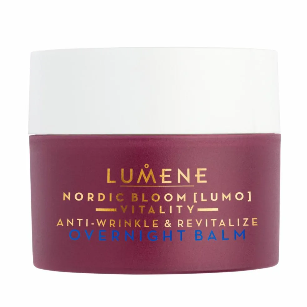 Nordic Bloom Vitality Anti-Wrinkle & Revitalize Overnight Balm understøtter hudens regenereringsproces i løbet af natten. Vegansk,