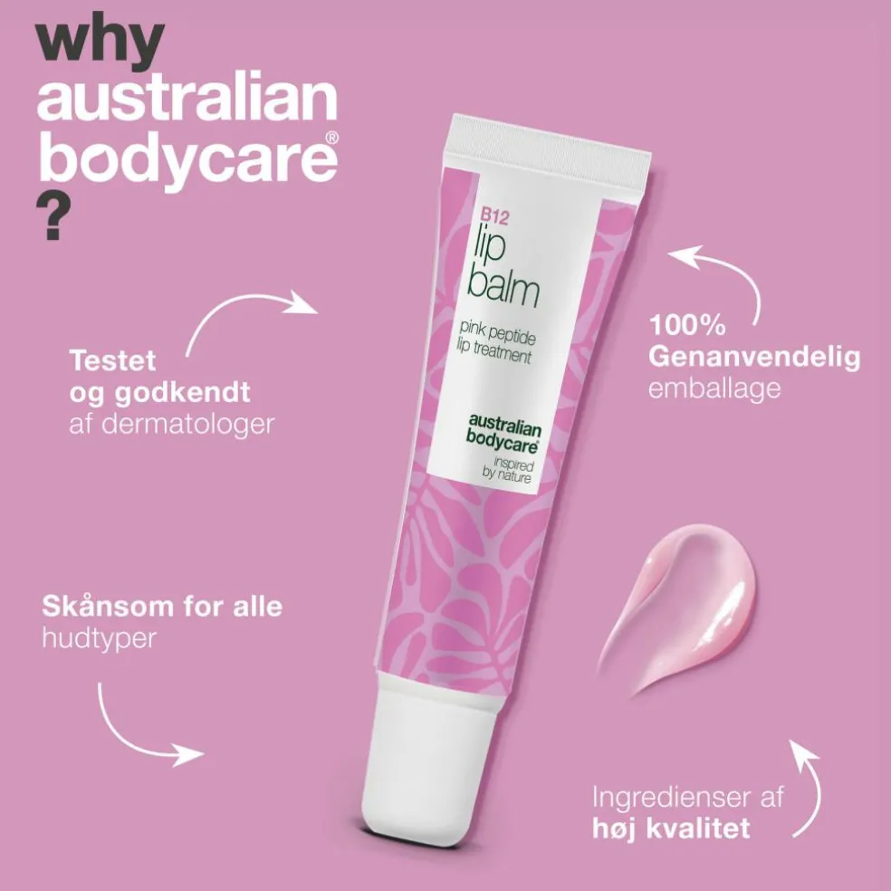 For en gennemført pleje anbefaler vi at kombinere Peptide Lip Treatment med andre produkter fra Australian Bodycare Vitamin B12 Serien, såsom Vitamin B12 Anti Age Serum og Vitamin B12 Face Cream.
