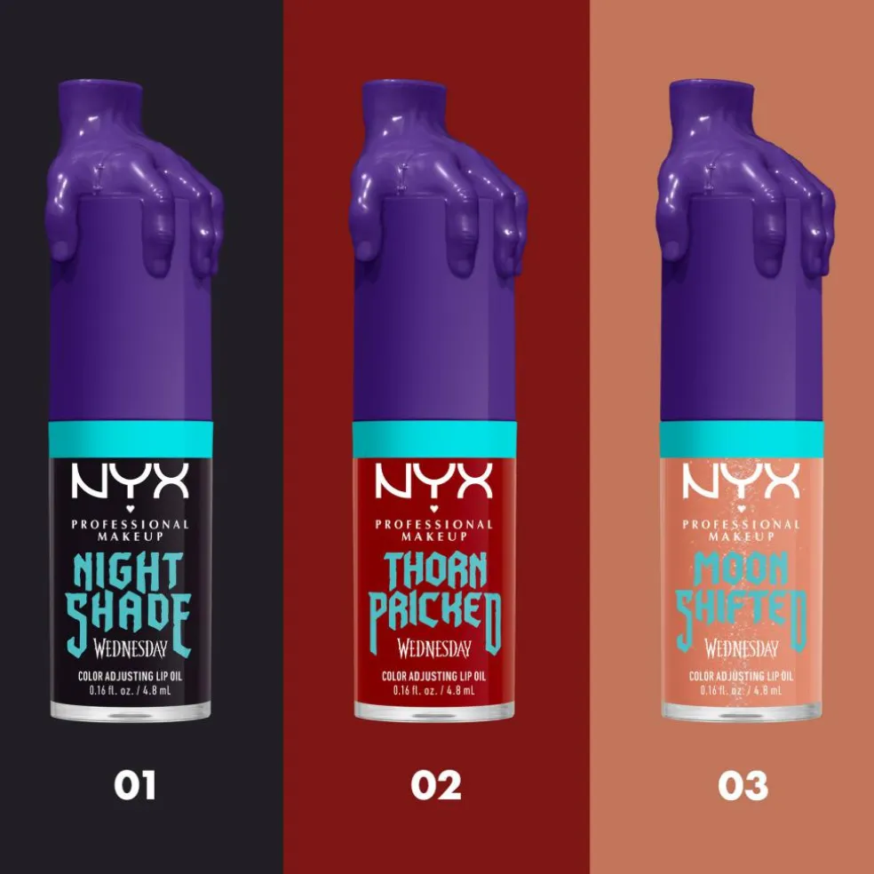 Forbered dig på at blive vild med vores FAT-applikator. En ekstra stor applikator som sikrer nem og jævn påføring af 3 splinternye, farveskiftende nuancer – hver og en lige så mystiske som Wednesday selv.