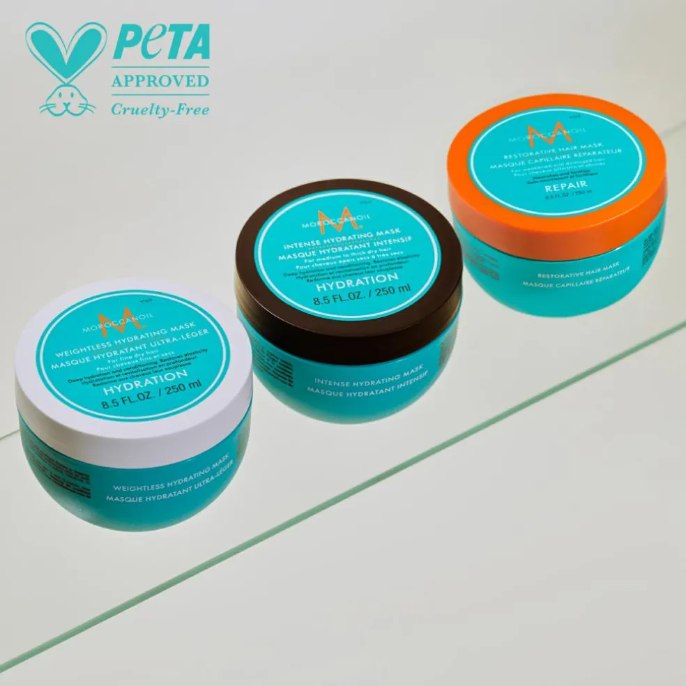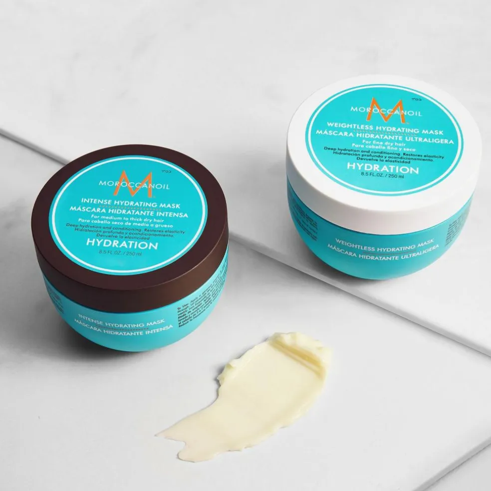 Moroccanoil Weightless Hydrating Mask er beriget med arganolie, sheasmør og hydrolyseret proteiner. Sheasmør og arganolie, som er rig på E-vitaminer, essentielle fedtsyrer og antioxidanter, tilfører pleje, fugt og glans til håret, mens hydrolyseret proteiner forbedrer hårets tekstur og elasticitet.