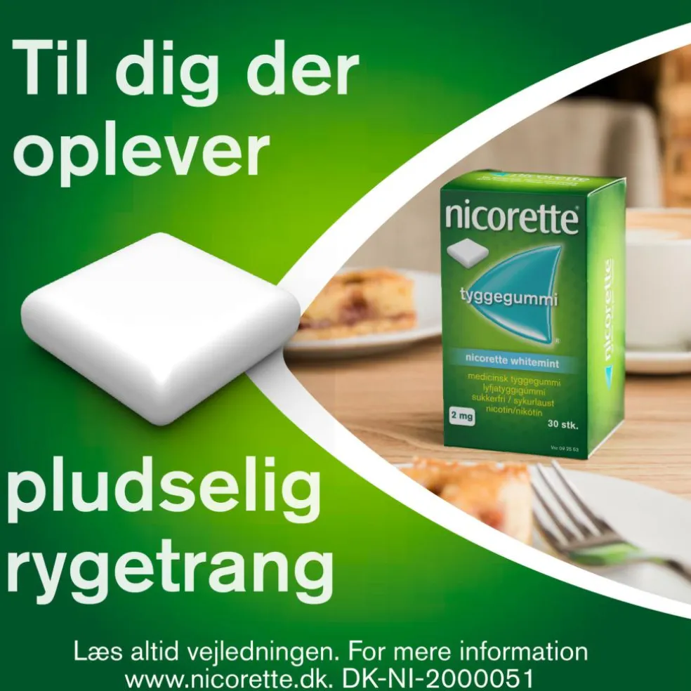Hvis du har glemt at bruge Nicorette: Har du glemt at bruge Nicorette skal du blot tage 1 Nicorette tyggegummi næste gang ved rygetrang.