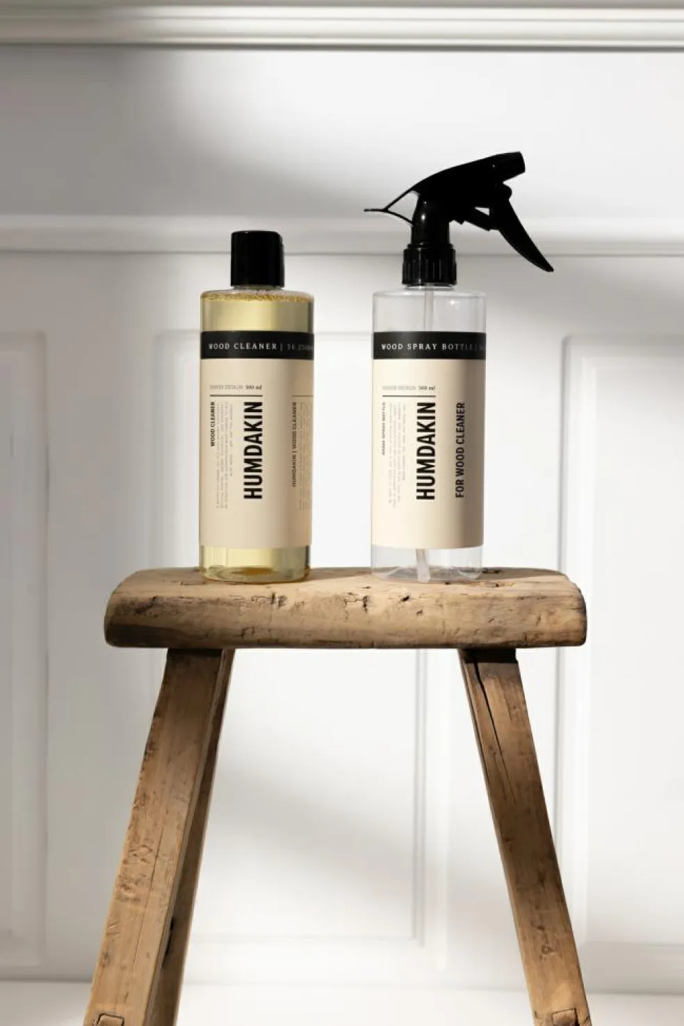 Sprayflaske (ikke med i købet) Hvis du vil bruge Humdakins sprayflaske, kan du lave 100 refills. Du skal kun bruge 3-5 ml Humdakin trærens (= 1 teskefuld), kom det i din tomme sprayflaske, og fyld den derefter op med lunkent vand. Så er du klar til din rengøring.
