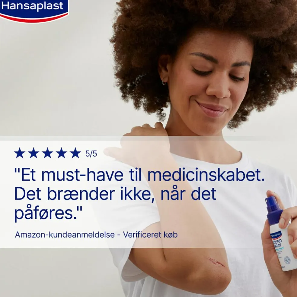 Hansaplast sårspray er en spray, der er nem at bruge til rensning af mindre, akutte sår som fx snitsår, hudafskrabninger, første- og andengradsforbrændinger og åbne vabler.