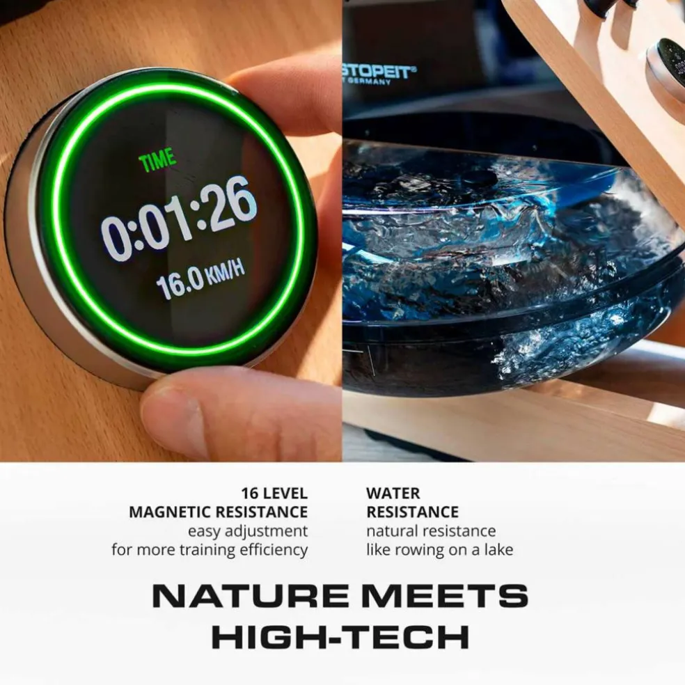 Den beroligende lyd og realistiske vandbevægelse skaber en fordybende oplevelse, der minder om at ro på åbent vand. Træn dig til en stærkere krop, mens du lader dig inspirere af vandets ro og styrke.