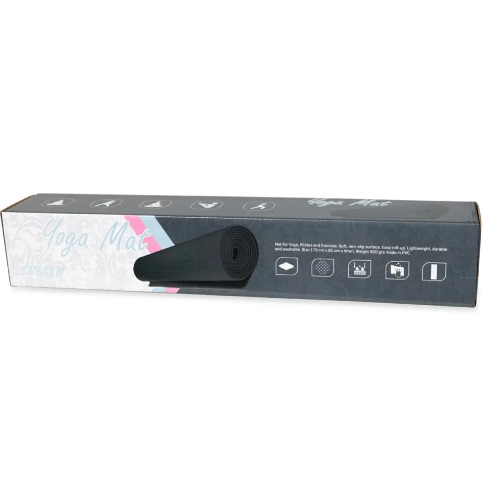 Måtten har en størrelse på 173 x 61 cm. og en tykkelse på 4 mm. Måtten vejer ca. 800 g. Måtten er produceret i skridsikkert materiale, så den forbliver på samme position under træning.