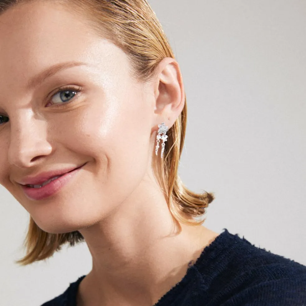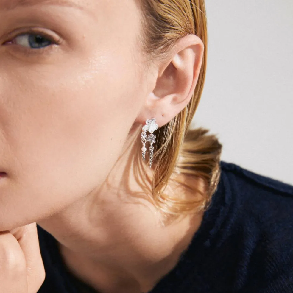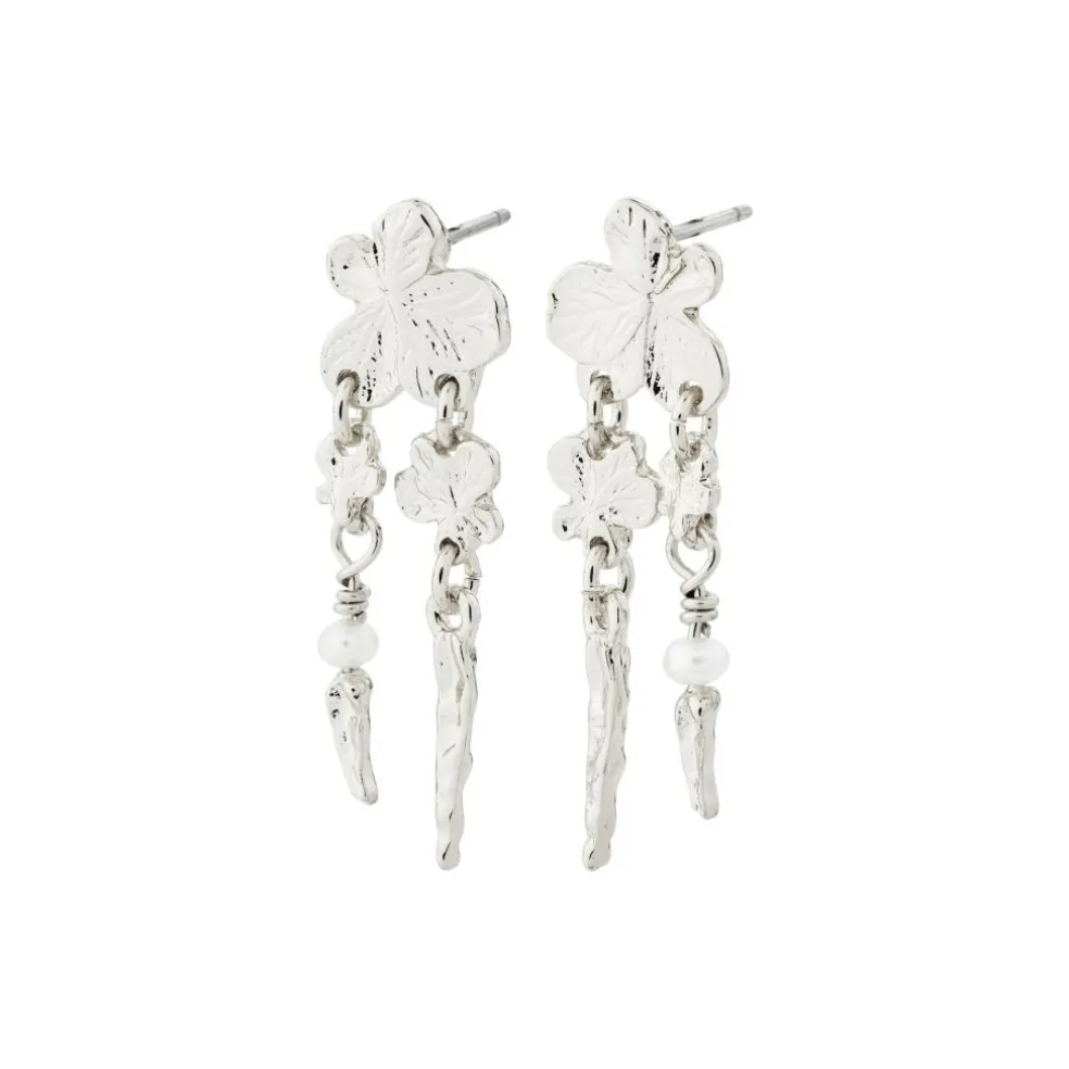 Dazzle in your details, med de sølvbelagte ZHURI øreringe, der giver et romantisk touch med fine blomstermotiver og en petit ferskvandsperle. Tilfører et levende og legende element til din stil og er perfekte til både hverdagsbrug og særlige øjeblikke. Fremstillet af 97% genanvendt materiale.