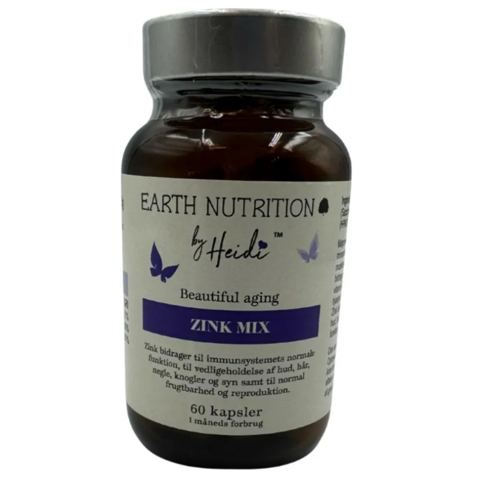 Earth Nutrition Zink Mix kombinerer magnesiumbisglycinat, zinkgær og aktivt vitamin B6 (P5P) – i en form, kroppen lettest kan genkende og anvende. 60 veganske kapsler – 1 måneds forbrug.